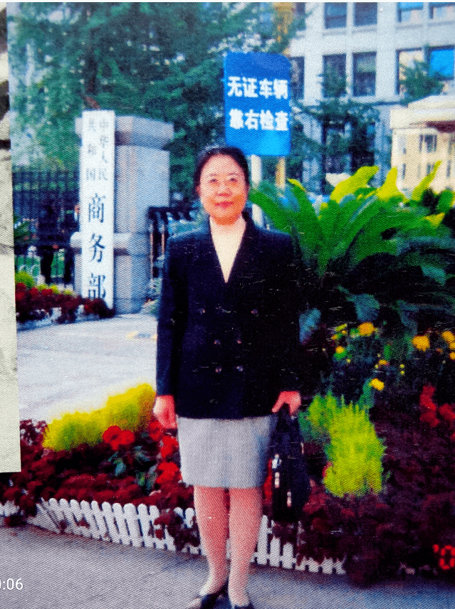 2010年5月蔡玲退休前在商务部办公楼前留影(2022.3.29日蔡玲 供图)