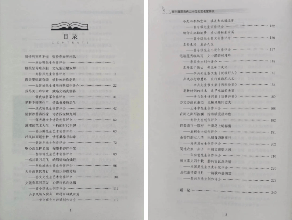 《资中籍现当代二十位文艺名家研究》目录