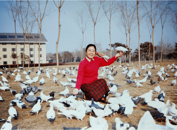 本文作者蔡玲参加商务部对外贸易工作会议,摄于北京国际会议中心。一只白鸽久久停留在蔡玲左手指掌,而另一只久久停在左臂正在亲吻蔡玲的脸颊与左耳