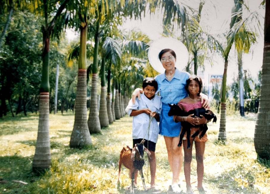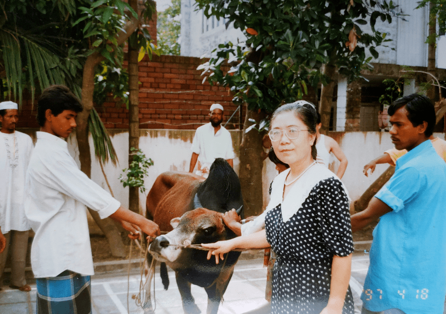1996年10月,本文作者蔡玲在孟加拉国救助流浪动物,教育儿童要善待动物
