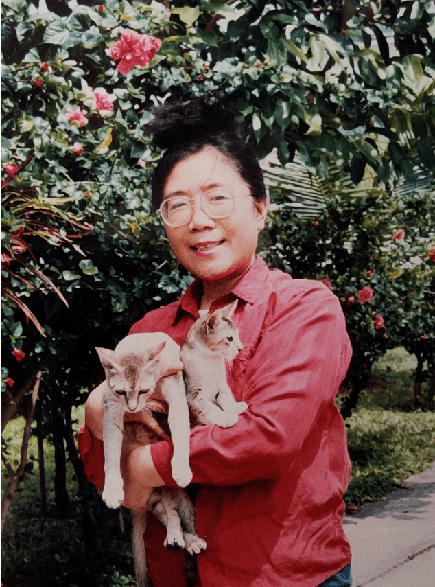 蔡玲怀抱2只小猫(1998年摄于中国驻孟使馆)