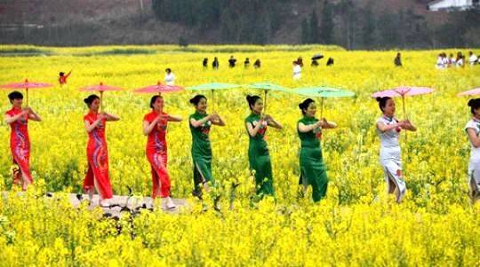 蓬安县通过“农业+旅游+脱贫”深度融合,做强美丽经济,实现乡村振兴。图为2018年3月10日首届司马相如故里·蓬安油菜花节在蓬安县新园乡踏坡梁村举行(郭安平 摄,图片来源:中新网)