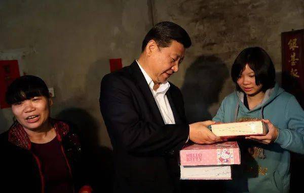 2012年12月7日至11日,中共中央总书记、中央军委主席习近平在广东省考察工作。这是习近平在顺德黄龙村看望村民张锡尧一家时,向张锡尧的女儿赠送工具书和学习用具(新华社记者 兰红光 摄,图片来源:新华网)