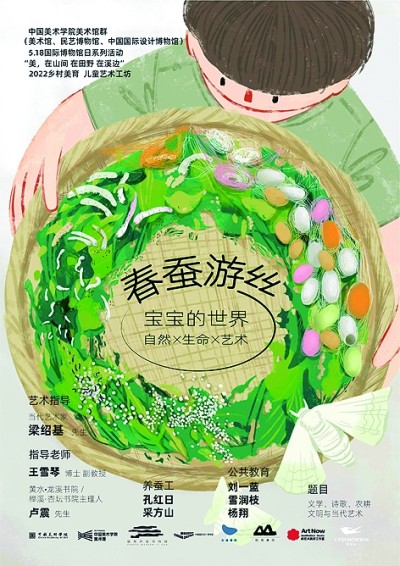 “寓教于乐”是中国传统的教育理念,历来被认为是通过快乐的学习方式展开,但实际操作时往往会流于初级和简单,这也是公共教育通常面临的难题。今年3月的一期题为“春蚕游丝”的艺术工坊,我专程去请来当代艺术家梁绍基先生,来担任儿童艺术工坊的艺术指导,在榉溪村的杏坛书院,为期2个月。活动分为两部分,一是带领孩子们从卵的孵化开始,通过饲养、观察蚕宝宝的生长,以及知识讲座,了解从蚕到丝到织物的过程,了解中国传统的丝织文化;二是在梁老师的指导下,开展丝的当代表现,启发孩子们思考农耕文明与当代艺术创作的关系,这里面的内容,既包含了艺术表现的形式,也结合了诗歌、文学、音乐等内容,是一次十分丰富系统的公教活动。