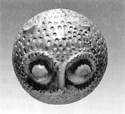 陕西华县泉护村遗址出土仰韶文化陶塑猫头鹰头 资料图片