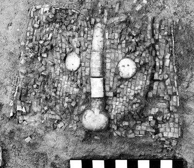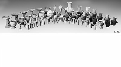 山东滕州岗上大汶口文化大墓随葬陶器 资料图片