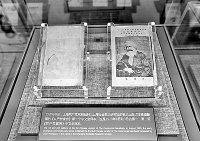 中共一大纪念馆展出的由陈望道翻译的《共产党宣言》第一个中文全译本(二○二一年六月摄)。新华社发
