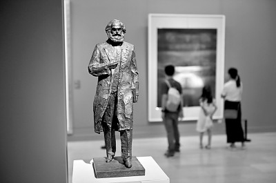 中国美术馆内的吴为山雕塑作品《马克思》。(2021年8月摄)新华社发