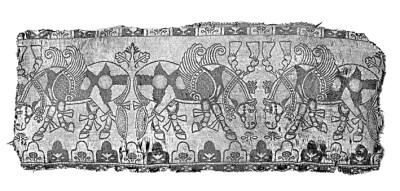 西域织锦以粟特锦和波斯锦数量为多,其中一件织有中古波斯人使用的八世纪钵罗婆文字的金锦,是目前世界上仅有的波斯文字锦,也是常在各大丝绸之路展览产出的明星文物。