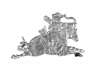 青海吐谷浑大墓曾出土众多精美文物。其中一枚刻有骆驼纹和古藏文的银质印章备受关注,经过解读,铭文意为“外甥阿柴王之印”,表明墓主身份应当为吐谷浑人。此外,墓中还出土了一件西亚、阿拉伯风格的金腰带,该腰带分为三股,两头饰以绿松石,是墓主身份等级的象征。墓中还出土了几件刻画骑射武士的金饰片,其中武士均着翻领长袍,衣领、袖头和短靴上有精美装饰,武士所骑的马应当就是大名鼎鼎的青海骢,该马以耐力强为突出优点,马腿较短,马鬃与马尾都是编织的。