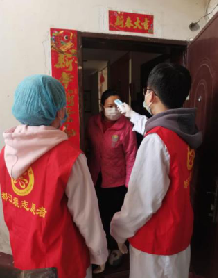 我被安排在都江堰市桂花社区医院。早上8:30,几个互不相识的人在桂花社区医院门口见了面。随后我们跟随社区医院的程浩主任到了办公室,详细了解情况后被分配至各自岗位开展工作。我主要跟随医生到所辖社区开展人员登记和体温测量工作。志愿者吴磊在门诊负责进出社区人员的登记和体温测量。范琳琳因为是医学专业学生,被安排在放射科辅助。张博昊负责为复工人员开具证明。