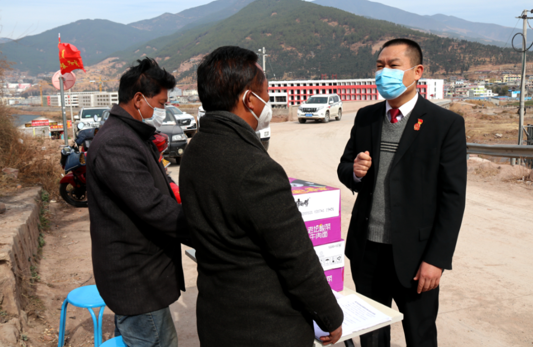 “在疫情发生以后,我们及时采取了多项措施进行防控,您带领法院干警给我们送来慰问物资,为我们加油打气,勉励我们坚定信心,共同努力,还亲自到广播站用彝汉双语宣讲相关法律知识,让村民和工作人员了解了危害公共安全、抗疫工作中不力等与我们密切相关的法律法规,让我们明白了哪些行为是违法的,下来以后,我们会通过广播站每天循环播放您录制的《严打疫情防控中的33种违法犯罪行为》音频,把音频传播到各村,将法律知识宣传音频作为防疫工作重要手段,号召大家合作抗疫,通过这些有效的手段,相信我们的脱贫攻坚工作、防疫工作,预防违法犯罪会做的越来越好。我们一定会坚定不移的将各项防控措施落到实处,为打赢疫情防控阻击战、歼灭战贡献绵薄之力!”这些是甘哈觉莫村书记阿来五达、阿吼驻村第一书记王小兵等一个个基层党员,在病毒防疫卡点前、党旗下,拍着胸脯对联乡领导刘勇刚许下的郑重承诺。