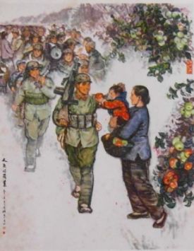 讲完“酸菜里面出政治”的故事,毛泽东意犹未尽,接着讲起了著名的“苹果有精神”的故事。他说:“艰苦奋斗是我们的政治本色。锦州那个地方出苹果,辽西战役的时候,正是秋天,老百姓家里很多苹果,我们战士一个都不去拿。我看了那个消息很感动。在这个问题上,战士们自觉地认为:不吃是很高尚的,而吃了是很卑鄙的,因为这是人民的苹果。我们的纪律就建筑在这个自觉性上边。这是我们党的领导和教育的结果。人是要有一点精神的,无产阶级的革命精神就是由这里头出来的。”