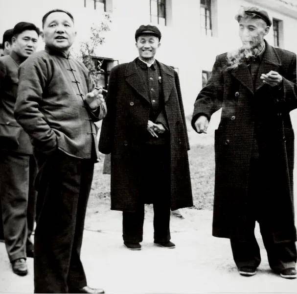 1965年11月底,邓小平视察西南三线建设,图为邓小平(左二)、程子华(右二)、吕正操(右一)在冶金指挥部楼前交谈。