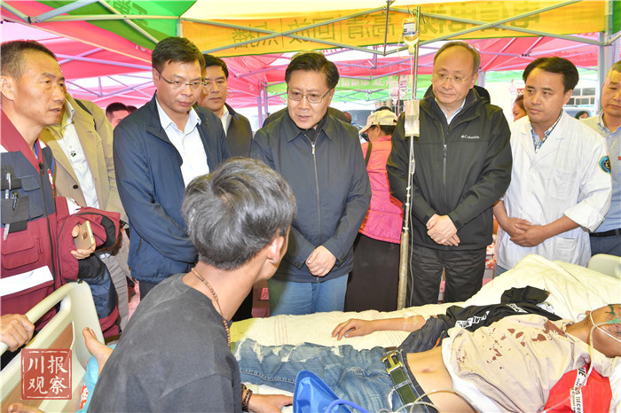 9日上午,四川省委书记、省抗震救灾指挥部指挥长王东明,省委副书记、省长、指挥部指挥长尹力,乘坐直升飞机抵达震中九寨沟县漳扎镇后,立即前往天源豪生酒店门前广场看望等候转移的游客,前往九寨沟县第二人民医院看望因灾受伤人员和医护人员,前往现场指挥部看望参与救援的专业力量,向大家转达习近平总书记和党中央、国务院的关心关怀,代表省委、省政府对游客和受灾群众表示慰问,对医护人员和救援力量表示感谢。